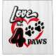 Animal lovers know that love has four paws, and this red and black design says it all. Perfect for any pet lover, dog owner, groomer, veterinarian, or anyone that loves animals. The design features two black paw prints and a red heart on a white background.