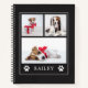 This simple and stylish notebook features three of your favourite photos of your pet dog or cat, with two cute paw prints. The background is an elegant, dark charcoal (almost black) colour with modern white text. The perfect keepsake gift for any pet lover!