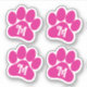Set of four cute individual hot pink dog paw prints personalised with your initial or your dog's initial in a unique curly letter font. Use these durable vinyl stickers to decorate your water bottle, laptop, phone, car, or almost anything! You can arrange the four stickers in any pattern you like or use them separately. This hot pink monogram paw is available with a white or transparent background.