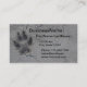 The background of this business card is a photograph of a dog's paw print left in a dirt road. Appropriate for any pet related or outdoor business.