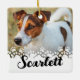 Delight in a unique celebration of your furry friend with our custom pet ornament. Crafted with love, our ornament features a charming photo of your pet, a playful paw print pattern, and their name in a bold script font. This keepsake not only adds a personalised touch to your holiday decor but also a heartwarming reminder of your treasured bond with your pet.