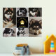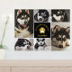 Black pet memorial photo print printed with a photo collage of six photos featuring your beloved pet. Add their name too in gold foil beneath a paw print.