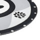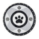 A modern depiction of a paw print surrounded by ornamental patterns within a circular frame. Suitable for themes involving pets, nature, animal care, and contemporary graphic design elements.