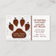 Business cards with your business name, brown paw print, woof art and custom text for adding hours open, message and all text fully customizable to suit your own pet lover business.