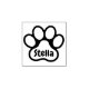 Rubber stamp featuring an outline of a paw print with customisable name inside.