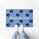 Cute, black paw prints on a blue background, is featured on this door mat. With message, "Wipe Your Paws Please!", makes this door mat a cute way to greet guests! Non-slip underside, cleans with a hose. Door mat resists fading, mould and mildew, decorated in the USA!
