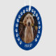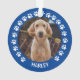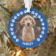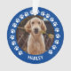 Custom pet ornament for dog (or cat) lovers features a photo of your furry friend on the front and back with a cute and modern round frame of paw prints.
