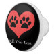 Paw prints in my heart ceramic knob. Delete or change sample text, font, font colour, font size to your choice. Image can be rotated or re-sized.