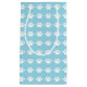 This gift bag displays a pattern of white paw prints on a blue background. This is a great item for paw print themed, dog themed, cat themed, or animal themed baby showers.