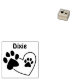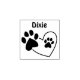 Cute paw prints over a heart outline with custom pet name rubber stamp. This nice stamp will help you show your love for your pet dog or cat and add nice imprints to your crafts and art projects. Leave as it is or personalise by replacing the sample name Dixie with the name of your pet. You can also add an additional name if space allows it.