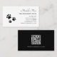 Paw Prints QR code Black White Pet Sitter Business Card