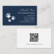 Paw Prints QR code Navy Blue Pet Sitter Business Card