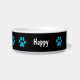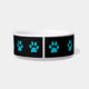 Paw prints small dog bowl with blue paws and black background and a place you can add your dogs name making this a classy pet bowl design. Use yours for a water dish, food dish, or catchall for all your doggy treats.