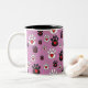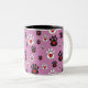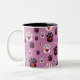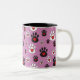 Paw prints with red hearts on pink Two-Tone coffee mug