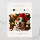 Fun dog-themed Christmas card in a modern design with a dog Christmas pun: Happy Howlidays. The text is printed with real gold foil, but with a dark brown paw and a green spruce in place of the o and the a in Howlidays. Personalize the Happy Howlidays photo card with a beautiful photo of your dog or dogs!