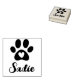 Make your mark with our exquisite Paw with Heart and Custom Name Rubber Art Stamp. This design beautifully combines an illustration of a pet paw with a calligraphic signature style custom name below the paw. Crafted with attention to detail, this stamp allows you to add a personal touch to your cards, stationery, and crafts. Simply enter your desired name, such as Sadie, and we'll create a unique stamp that captures your individuality. Whether you're a pet lover or seeking a heartfelt gift, this stamp is sure to leave an impression.