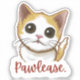 Say it without saying it — just stick it! This adorable “Pawlease” sticker features a big-eyed cartoon cat giving you the ultimate innocent look.