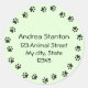 Address labels with a round border of black dog or cat paw prints on a pale green background. Customise with your name and contact information and use them as return address labels on the back of envelopes or on gift packages. Or stick them in books or on other belongings to identify them as yours. Available in other colours.