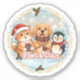 Celebrate the holidays with irresistible cuteness in this charming Christmas animal design. Featuring an adorable trio—a ginger cat in a Santa hat holding a wrapped gift, a golden retriever puppy wearing a plaid scarf with a gingerbread bone, and a sweet penguin in earmuffs and a bow tie clutching a candy cane—this scene radiates festive joy. Set in a snowy winter landscape with distant mountains and framed by a decorative scalloped border accented with golden glitter swirls and holly, the playful phrase “Paws & Claus” completes the look. Perfect for animal lovers, this design captures the warmth, whimsy, and cheer of the Christmas season.
