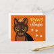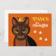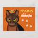 The design features a playful, geometric brown cat with a yellow bird perched on its head. The cat appears to be deep in thought, with its gaze directed upwards. Accompanied by the words "paws for thought," this illustration exudes a whimsical and contemplative vibe.