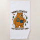 A charming cartoon illustration features a happy brown bear, likely a father figure, smiling warmly. He wears a blue prize ribbon on his chest that reads "BEST PAPA BEAR" in yellow text and holds a blue mug, presumably filled with coffee or tea. Above him, the text "PAWS-ITIVELY" arches in bold, dark brown letters. Below the bear, the phrase "THE GREATEST DAD" is prominently displayed. The background is a light cream colour, accented with small, simple pine trees, red hearts, and star-like sparkles, creating a cheerful and affectionate theme.