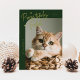 Pawsitively Festive Cat Photo Green Christmas Holiday Card