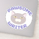 A cute and fun author cat pawsome writer cartoon cool character fun library love curl up and write author writing write now literary quote classic style writer pride love writing book lover deluxe decal sticker that’s perfect for writers of all genres. Get an epic author writing slogan sticker today.