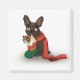 Pax the mighty French bulldog is carrying Huey the kitten in a Christmas stocking.