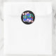 The Pax Pox Sticker round with a black background. Leave these on people at conventions!