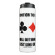 Showcase your wry duplicate bridge attitude with this thermal tumbler featuring the four card suits along with the following sound advice: "Pay Attention To Bidding It Will Determine The Best Line Of Play". Memorable bridge advice thermal tumbler for any bridge player who likes to win!