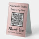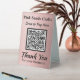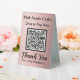 Pay Here QR Code Rose Gold Metallic Foil Effect Table Tent Sign. Easily personalise the business name and other text fields, insert your own qr code, and your unique business supplies are ready. Faux metallic rose gold foil effect scannable payment signs are great for craft booths, market stalls and much more. Add additional business contact info in the template area on the back.