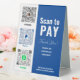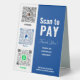 Add your own QR Codes for Venmo, PayPal, or Cash App payments. Digital payment systems have made paying at craft shows, popups, and Farmers Markets so much easier. Scanning a QR code allows people to pay for goods and services through a digital wallet when they have run out of cash. Customers scan your PayPal QR code and transfer money right into your account. Safe and secure. This pay-here sign is a must for your small business.   Customise with your business name and even remind them to as for a review on social media. Available in multiple colours for your business branding.