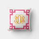 PDR Pink and Orange Greek Key Script Monogram Cushion