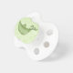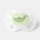 Peapod baby pacifier with a cute little pea in the pod on a green swirl background.