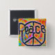 bright bold colours on this festive graffiti type art button that simply reads "peace" perfect for any hippie personality