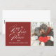 PEACE AND JOY HOLIDAY PHOTO CARD with RED. The words Love, Peace and Joy always describe the Christmas Holiday Message so well. You will love this beautiful Christmas photo card with a white script text and delicate snowflakes on a dark red background. Design by designer Elke Clarke© for Monogram Gallery.