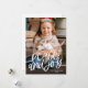 A simple holiday card featuring the words “peace and joy” in a handwritten script and your favourite photo.