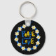 Show your support for Ukraine with this keychain featuring a modern white flower wreath that has "Peace and Love" text in blue and yellow Ukraine flag colours on black background.