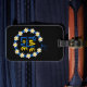 Show your support for Ukraine with this modern luggage tag design featuring a white flower wreath that has "Peace and Love" text in blue and yellow Ukraine flag colours on black background.