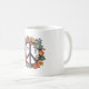 This delightful mug features a classic peace sign adorned with vibrant flowers and a flowing musical staff with notes trailing elegantly from it. Perfect for adding a touch of retro to your morning beverage routine this mug is a must-have for anyone who loves peace, love, and music.