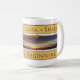 A mug is enhanced with the sunrise, saying "Salaam, Shlama, Shalom" and "Peace at the Beginning".