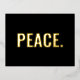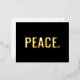 Peace black and gold text minimalist modern Foil Holiday Postcard.