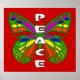 A rainbow coloured butterfly has the word "Peace" in the middle to show how fragile it is. Share and show it to build strength in numbers to create a world without war.