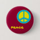 a maroon colour with bright blue and yellow peace sign. and the word peace.