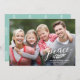 Christmas peace in modern handwritten script lettering, non-secular holiday photo card with foliage branch.