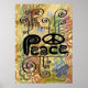 Peace poster with hand lettering in black, a peace sign, and a colourful background of an abstract watercolor. An original artwork by Angela Hoard-Dunn.