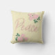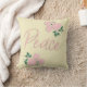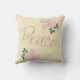 Peace with pink peonies design by Leebrick Prints. This pillow's background colour (light yellow is shown) is customisable.