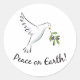A beautiful dove carrying an olive branch. A classic symbol of peace. Text: Peace on earth.