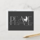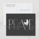 These 5.6" x 4.25" holiday greeting postcards feature the greeting, "Peace" in large letters in shades of grey on a black background with the message, "Wishing you peace, love & joy this holiday season." Simply add your name(s) & year. The back has placeholders for the sender's name & address.