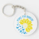 Please support Peace for Ukraine and end of war now with this message on the keychain and sunflower image Ukrainian and World symbol of Peace in Ukrainian flag colours.